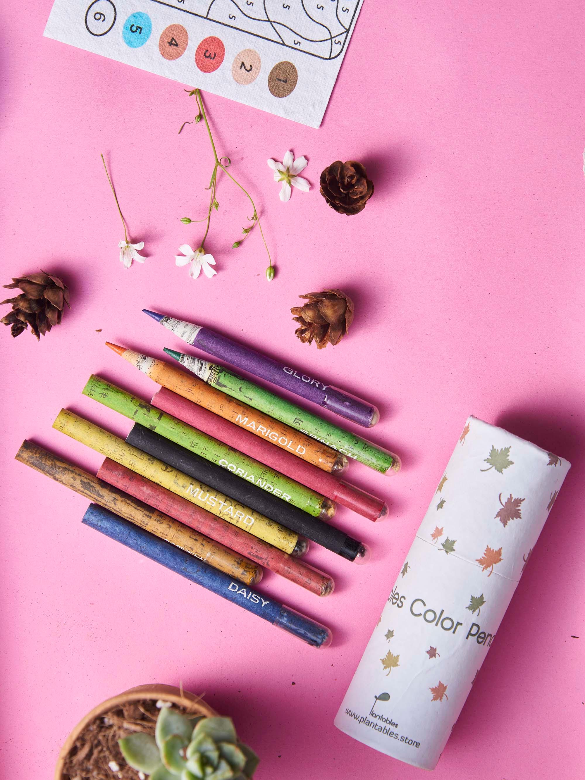 This kit comes with a set of pencil colors made from recycled paper with seeds of various plants at the bottom. Once the pencil is finished, the stubs can be planted as well!