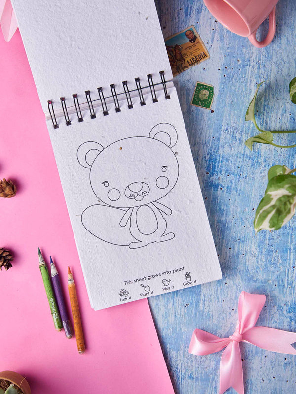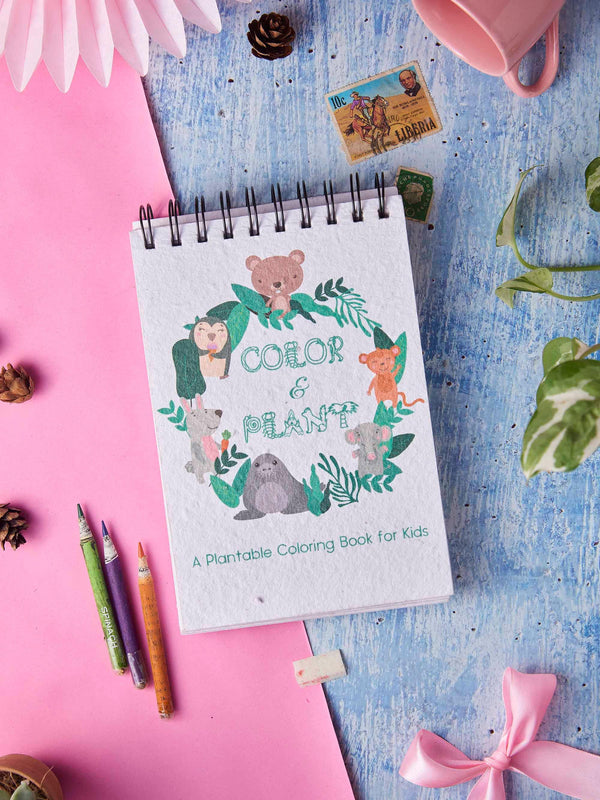Color & Plant is a fun eco-friendly Plantable coloring book for children with 27 different animals to color and create!
